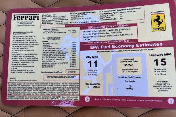 This 2008 Ferrari 599 GTB Fiorano is powered by a 6.0-liter F140 V12 paired with a six-speed F1 automated transaxle and is finished in Rosso Corsa over Beige Tradizione leather. It is modified with KW suspension with a front-axle lift system as well as a Tubi Style exhaust system, a GTO-style stripe, aftermarket 20″ wheels, and a Novitec front spoiler, rear skirt, and side skirt trim. Retained factory equipment includes powered Recaro bucket seats, carbon-ceramic brakes, Scuderia Ferrari fender shields, a Bose hi-fi sound system, and a carbon-fiber-trimmed steering wheel with shift lights. The car spent time in multiple states before the seller’s 2024 purchase, and they have since added approximately 100 of the 10k indicated miles. Work during their ownership included refinishing sticky switchgear and replacing the turn signal stalk, battery, TPMS sensors, and taillights. This 599 GTB Fiorano is now offered with a Ferrari Vehicle Identification Passport, a window sticker, literature and accessories, two keys, a clean Carfax report, and a clean Texas title in the seller’s name.