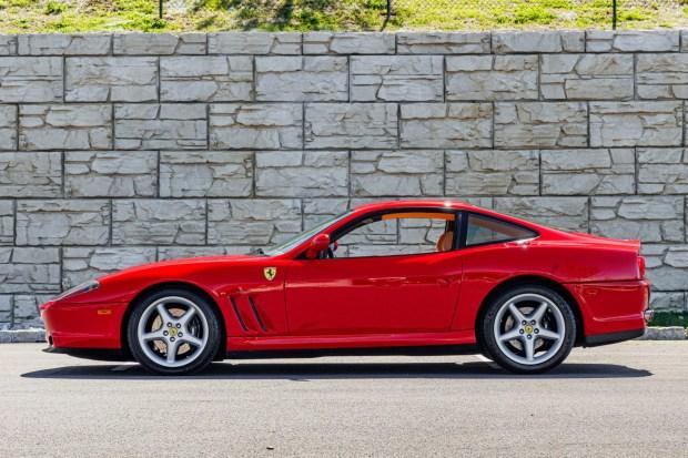 This 1997 Ferrari 550 Maranello shows 30k miles following registration history in several states, and it is powered by a 5.5-liter V12 paired with a six-speed manual transaxle. Finished in Rosso Corsa over Beige Tradizione leather upholstery, the car is equipped with a limited-slip differential, 18″ five-spoke alloy wheels, fog lights, rear wheel spacers, Scuderia Ferrari fender shields, power-adjustable Daytona-style seats, a gated shifter, drilled aluminum pedals, a CD stereo, and automatic climate control. The car was listed on BaT in March 2021 and December 2022, and work following the selling dealer’s 2024 acquisition is said to have included replacing the timing belt during a 30k-mile service. This 550 Maranello is now offered by the selling dealer with an owner’s manual, a tool kit, a Carfax report, and a clean New York title.